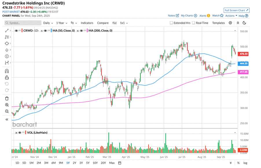 On Aug. 27, CRWD delivered strong Q2 results, prompting its shares to surge 4.6% in the following trading session. Due to strong growth in its subscription revenue, the company delivered total revenue of $1.2 billion, up 21.3% from the year-ago quarter and 1.7% ahead of analyst expectations. Moreover, its adjusted EPS improved 5.7% year-over-year to $0.93, topping consensus estimates of $0.83. Additionally, the company achieved record Q2 net new Annual Recurring Revenue (ARR) of $221.1 million, record Q2 cash flow from operations of $332.8 million, up 1.9% from the same period last year, and record Q2 free cash flow of $283.6 million, reflecting a 4.2% rise from the prior-year quarter.