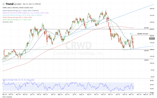 If CrowdStrike breaks below that level and closes below $150, we could see significantly more downside in the weeks ahead.