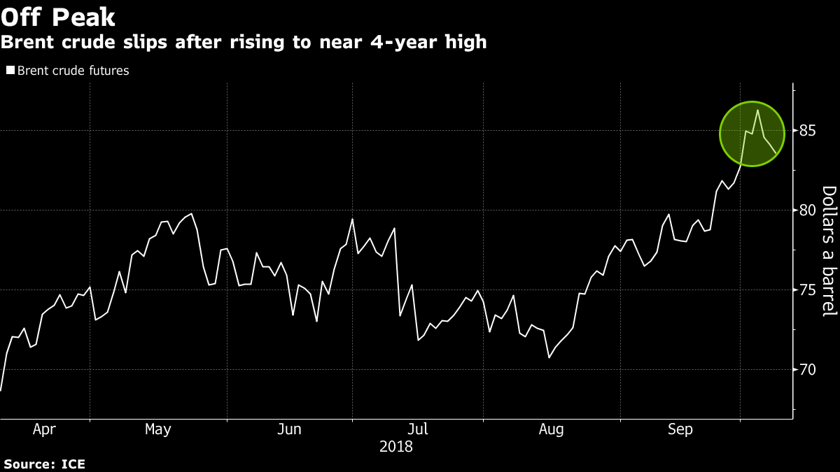 Oil has rallied since early September on concerns that OPEC and other major producers wouldn’t raise output enough to make up for the squeeze on Iranian shipments. Major buyers of crude from the Islamic Republic have been shunning or scaling back purchases as a Nov. 4 cutoff date set by the Trump administration approaches.