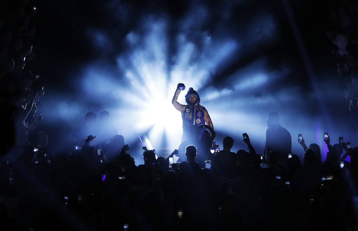 Boxing - Oleksandr Usyk v Tony Bellew - WBC, IBF, WBA & WBO World Cruiserweight Titles - Manchester Arena, Manchester, Britain - November 10, 2018 Oleksandr Usyk makes his entrance before the fight Action Images via Reuters/Carl Recine