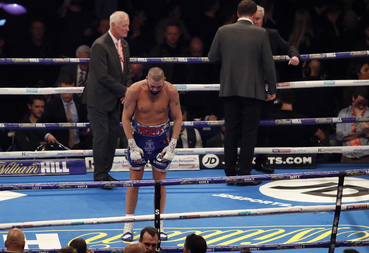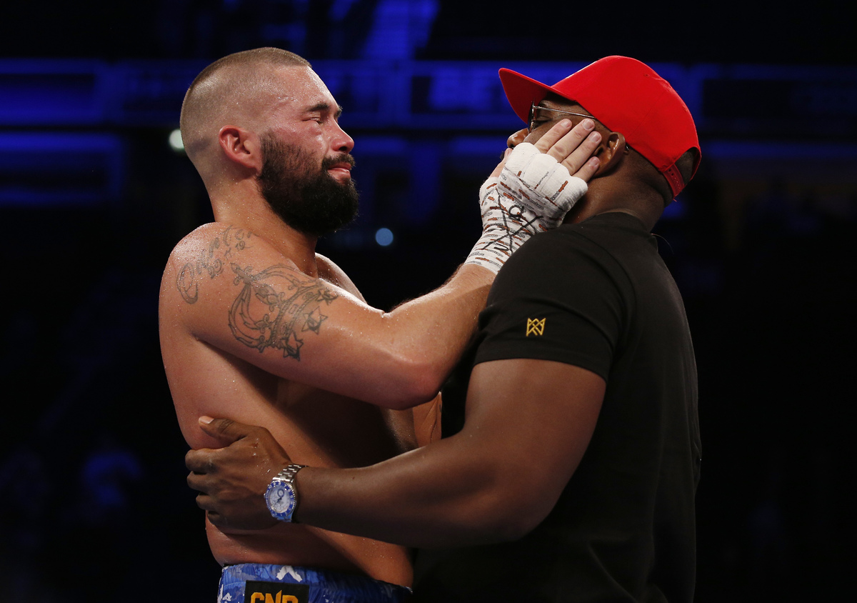 Boxing - Oleksandr Usyk v Tony Bellew - WBC, IBF, WBA & WBO World Cruiserweight Titles - Manchester Arena, Manchester, Britain - November 10, 2018 Tony Bellew kisses promoter Eddie Hearn after he lost the fight Action Images via Reuters/Carl RecineBoxing - Oleksandr Usyk v Tony Bellew - WBC, IBF, WBA & WBO World Cruiserweight Titles - Manchester Arena, Manchester, Britain - November 10, 2018 Oleksandr Usyk celebrates as he is declared the winner of the fight while Tony Bellew looks dejected Action Images via Reuters/Carl RecineBoxing - Oleksandr Usyk v Tony Bellew - WBC, IBF, WBA & WBO World Cruiserweight Titles - Manchester Arena, Manchester, Britain - November 10, 2018 Oleksandr Usyk celebrates after knocking out Tony Bellew to win the fight Action Images via Reuters/Carl RecineBoxing - Oleksandr Usyk v Tony Bellew - WBC, IBF, WBA & WBO World Cruiserweight Titles - Manchester Arena, Manchester, Britain - November 10, 2018 Tony Bellew loses the fight after being knocked out by Oleksandr Usyk Action Images via Reuters/Carl RecineBoxing - Oleksandr Usyk v Tony Bellew - WBC, IBF, WBA & WBO World Cruiserweight Titles - Manchester Arena, Manchester, Britain - November 10, 2018 Tony Bellew with Dereck Chisora after he lost the fight Action Images via Reuters/Andrew Couldridge