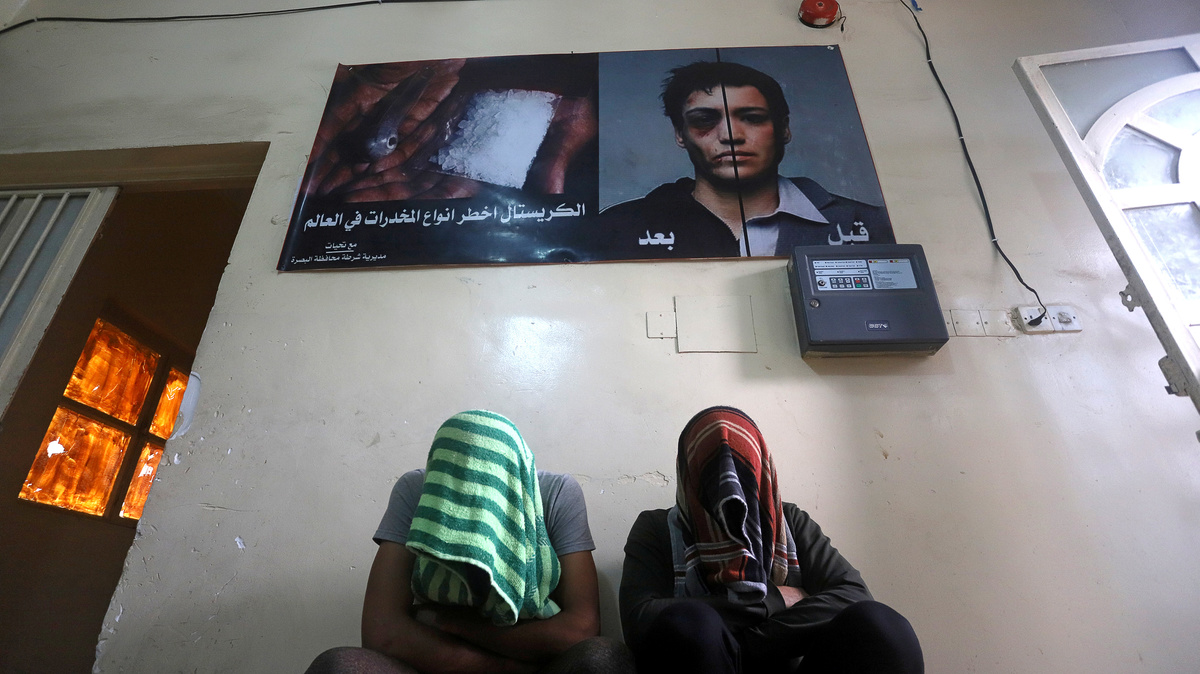 Inside a training complex on the edge of Basra province, police have re-purposed a building as a makeshift rehab center for users nearing release.