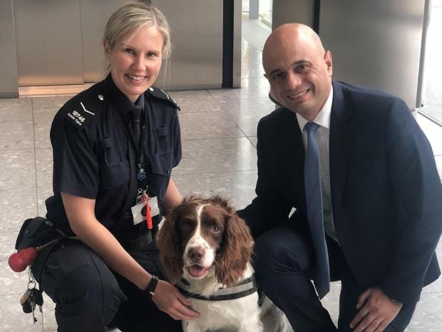 Embarrassingly, the find came on the same day Mr Javid – who took over from Amber Rudd on Apil 30 – posted a picture of himself with a Border Force officer and a sniffer dog at Heathrow Airport.