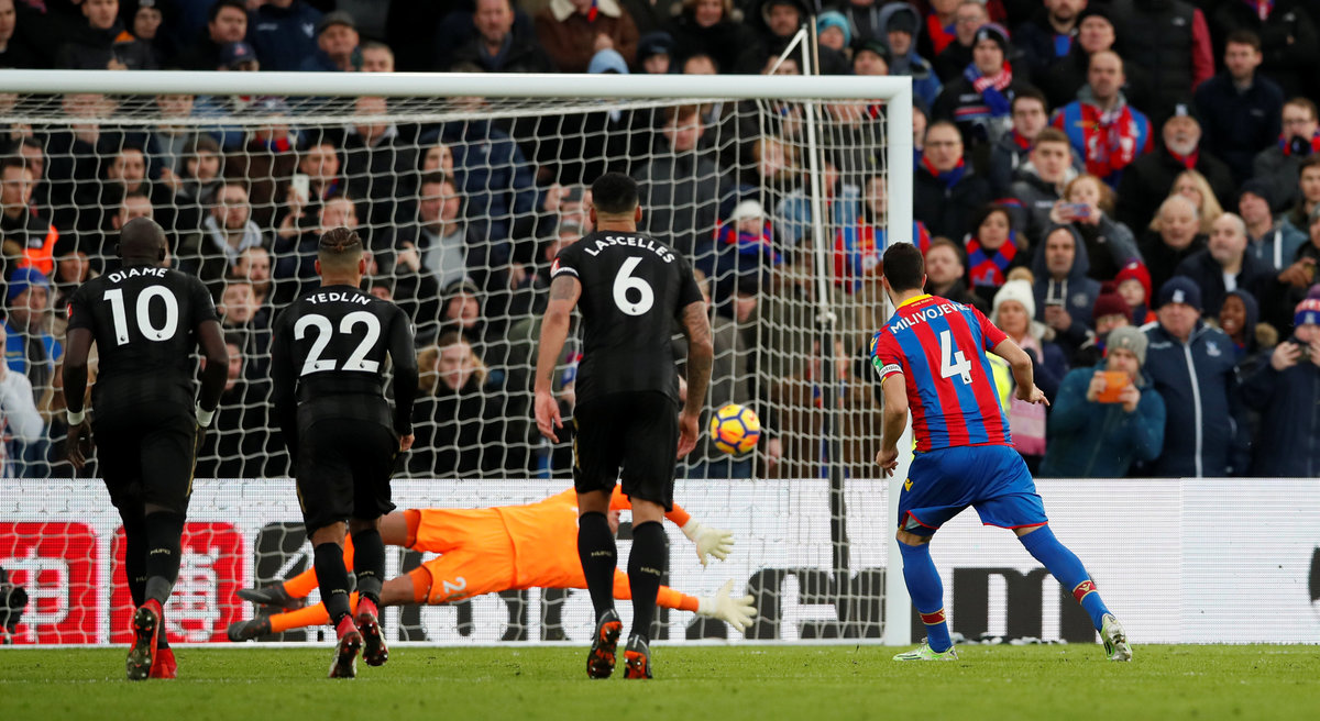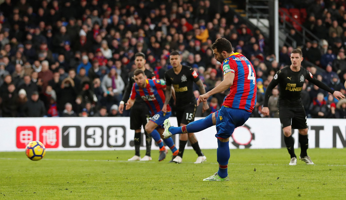 Palace equalised 10 minutes into the second half when they were awarded a penalty for Ciaran Clark’s foul on Christian Benteke and Milivojevic converted despite Karl Darlow getting a hand to the ball.