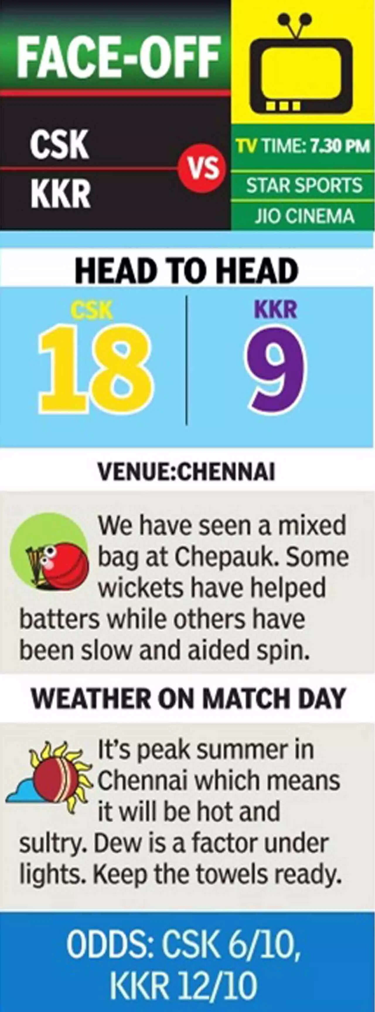 1/10:CSK vs KKR IPL 2023: Kolkata take on Chennai in a must-win game