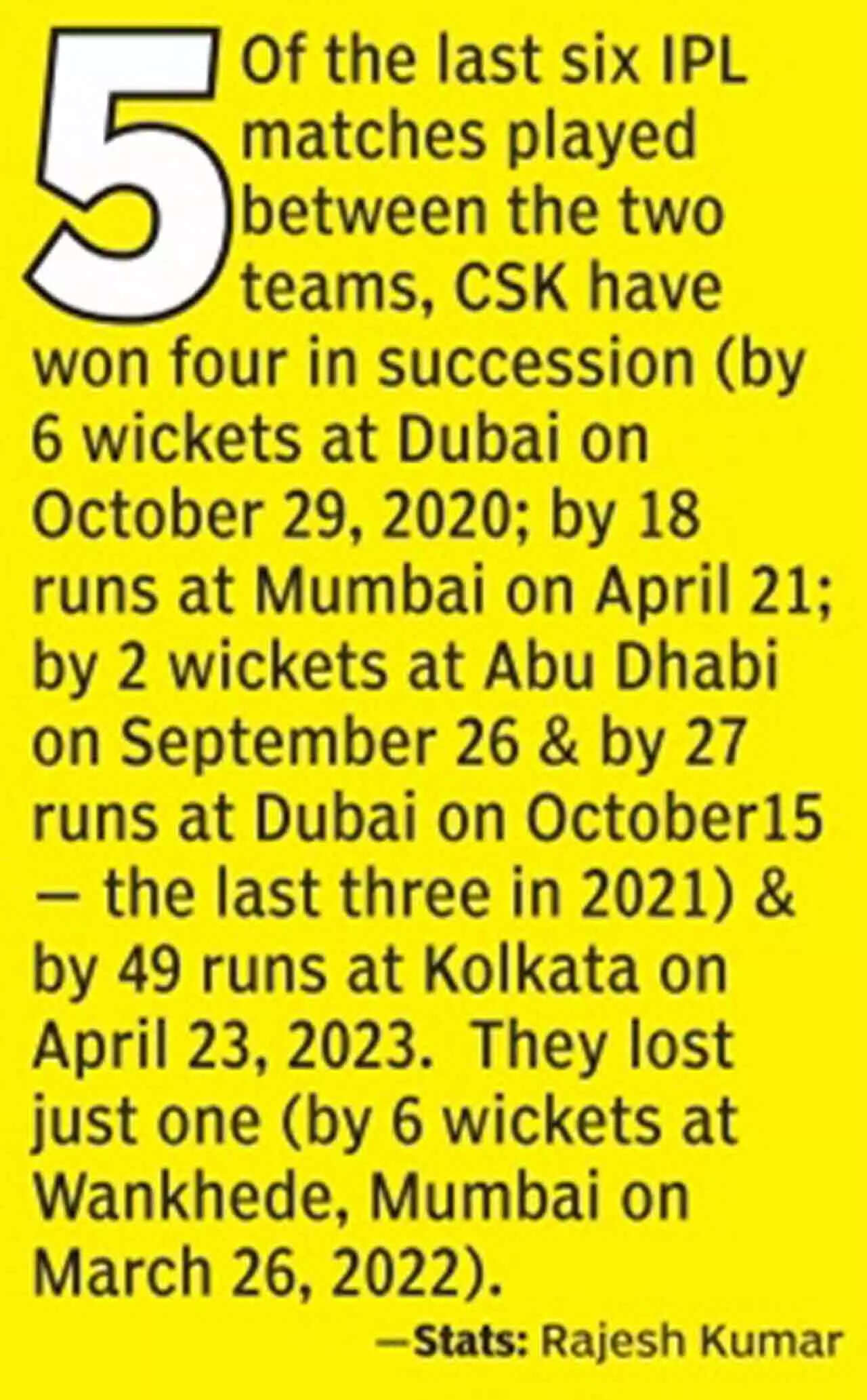 Their previous match against Delhi Capitals was the perfect example. With the ball stopping and turning appreciably, stroke-making was difficult in the first 10 overs. But in walked designated spin-hitter Dube, and changed the complexion of the game with a 12-ball 25.