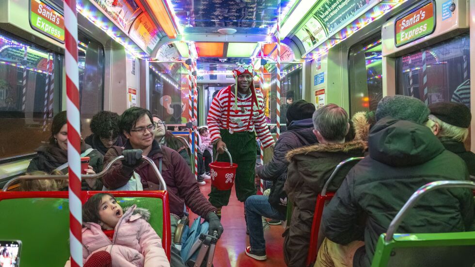 Inside, CTA employees dressed up as elves passed out candy canes while holiday hits played through the speakers between stop announcements.