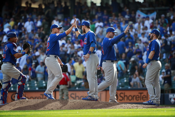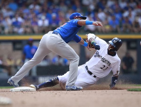 The Cubs reduced their magic number for clinching the National League Central title to five. Stephen Vogt and Brett Phillips hit back-to-back home runs with two outs in the second to vault the Brewers to a 3-0 lead, but the Cubs chipped away to take a 4-3 lead on Ben Zobrist's two-run single with two outs in the fifth.