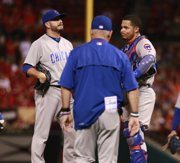 Addison Russell hit a three-run double off Luke Weaver with two out in the first, and Javier Baez smacked a three-run home run in the third.