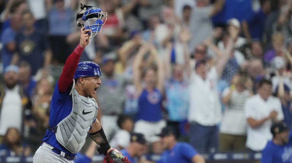 Happ stutter-stepped as the ball fell into his glove, then fired an accurate throw home, long-hopping it into catcher Miguel Amaya’s glove. Amaya dropped a knee and lunged across the baseline, tagging Miller with both hands for the final out of the Cubs’ 7-6 victory in 11 innings Tuesday.