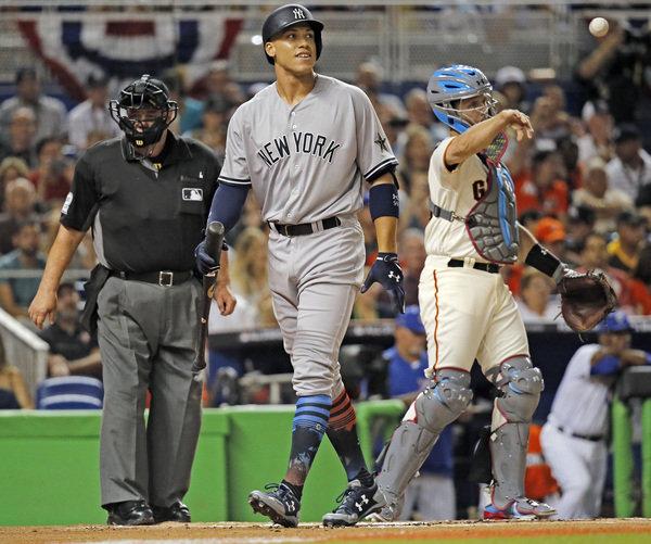 Judge may have had some fun, but he didn't make much contact against Max Scherzer, Carlos Martinez and Alex Wood, going 0-for-3 with a strikeout, groundout and flyout to center.