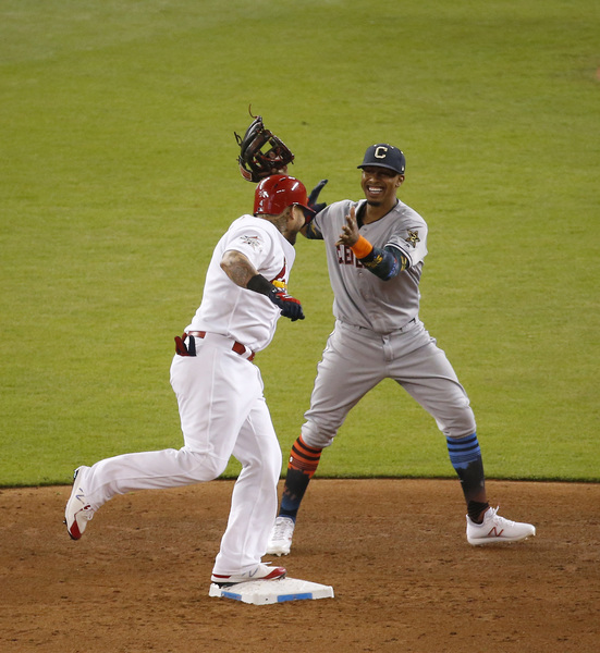The game was tied heading into the 10th, with Miguel Sano's RBI single in the fifth giving the AL the lead and Yadier Molina hitting a game-tying home run in the sixth.