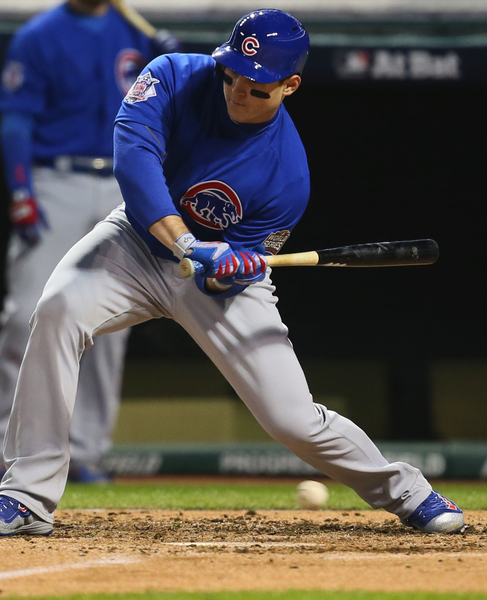 The Cubs put a runner on third with one out in the ninth but Javier Baez attempted to bunt with two strikes _ he did not succeed _ and Cleveland shortstop Francisco Lindor ranged toward second to stop a Dexter Fowler grounder back up the middle, throwing the leadoff man out by a step.