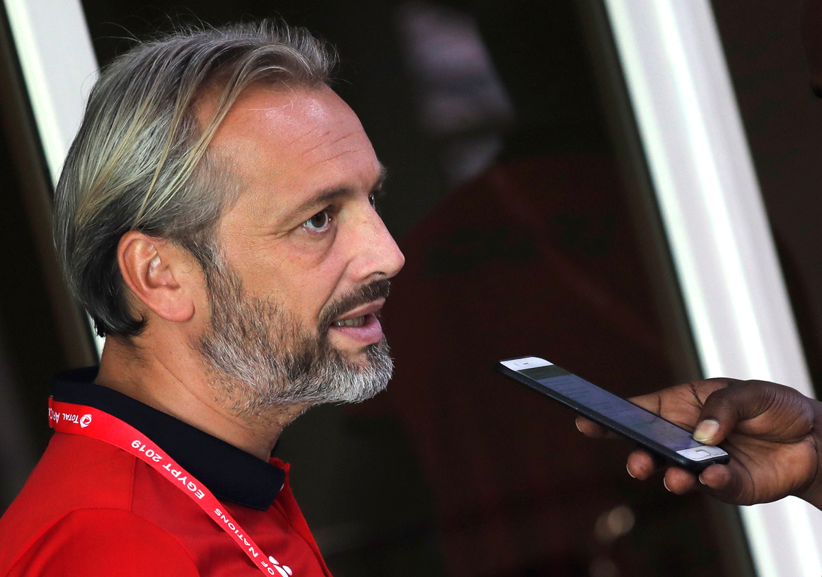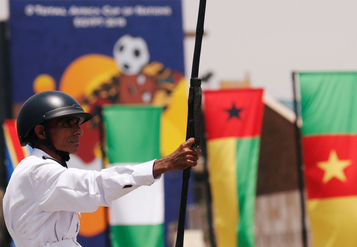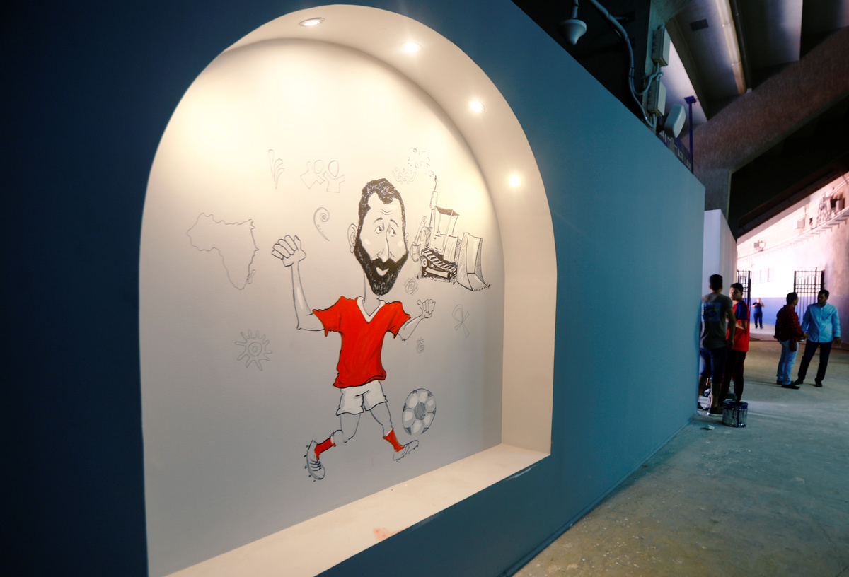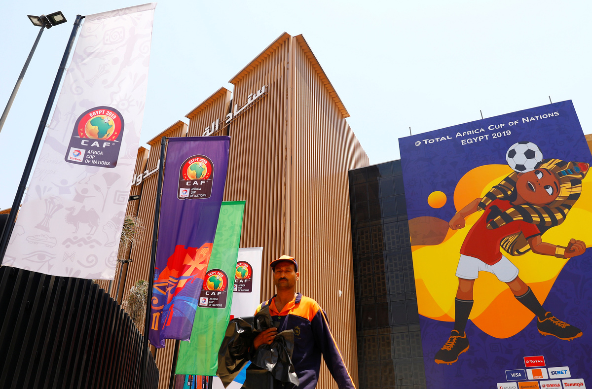 Employees and security are seen inside the Cairo International Stadium ahead of the Africa Cup of Nations opening soccer match between Egypt and Zimbabwe in Cairo, Egypt June 19, 2019. REUTERS/Amr Abdallah DalshEgypt's coach Javier Aguirre speaks to media with Ahmed El Mohamady, Egyptian national team captain, during a news conference ahead of the African Nations Cup opening soccer match against Zimbabwe at Cairo International Stadium, Egypt June 19, 2019. REUTERS/Amr Abdallah DalshA police officer stands near the flags and a picture of a mascot named "TUT" at the Cairo International Stadium ahead of the Africa Cup of Nations opening soccer match between Egypt and Zimbabwe in Cairo, Egypt June 19, 2019. REUTERS/Amr Abdallah DalshEgypt's coach Javier Aguirre speaks to the media with Ahmed El Mohamady, Egyptian national team captain, ahead of the African Nations Cup opening soccer match against Zimbabwe at Cairo International Stadium, Egypt June 19, 2019. REUTERS/Amr Abdallah DalshEmployees and security personnel are seen beside a drawing for tournament inside the Cairo International Stadium ahead of the Africa Cup of Nations opening soccer match between Egypt and Zimbabwe in Cairo, Egypt June 19, 2019. REUTERS/Amr Abdallah DalshYoussouf Mulumbu, DR Congo's captain smiles during a news conference ahead of the African Nations Cup opening soccer match against Uganda at Cairo International Stadium, Egypt June 19, 2019. REUTERS/Amr Abdallah DalshUganda's coach Sebastien Desabre talks to the media after a news conference ahead of the African Nations Cup opening soccer match against DR Congo at Cairo International Stadium, Egypt June 19, 2019. REUTERS/Amr Abdallah DalshAn employee walks in front of a picture of Egyptian mascot for the Africa Cup of Nations, named "TUT" at the Cairo International Stadium ahead of the Africa Cup of Nations opening soccer match between Egypt and Zimbabwe in Cairo, Egypt June 19, 2019. REUTERS/Amr Abdallah Dalsh