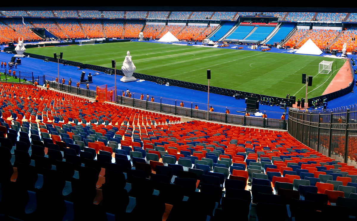A general view of Cairo International Stadium as employees and security complete their work ahead of the Africa Cup of Nations opening soccer match between Egypt and Zimbabwe in Cairo, Egypt June 19, 2019. REUTERS/Amr Abdallah Dalsh
