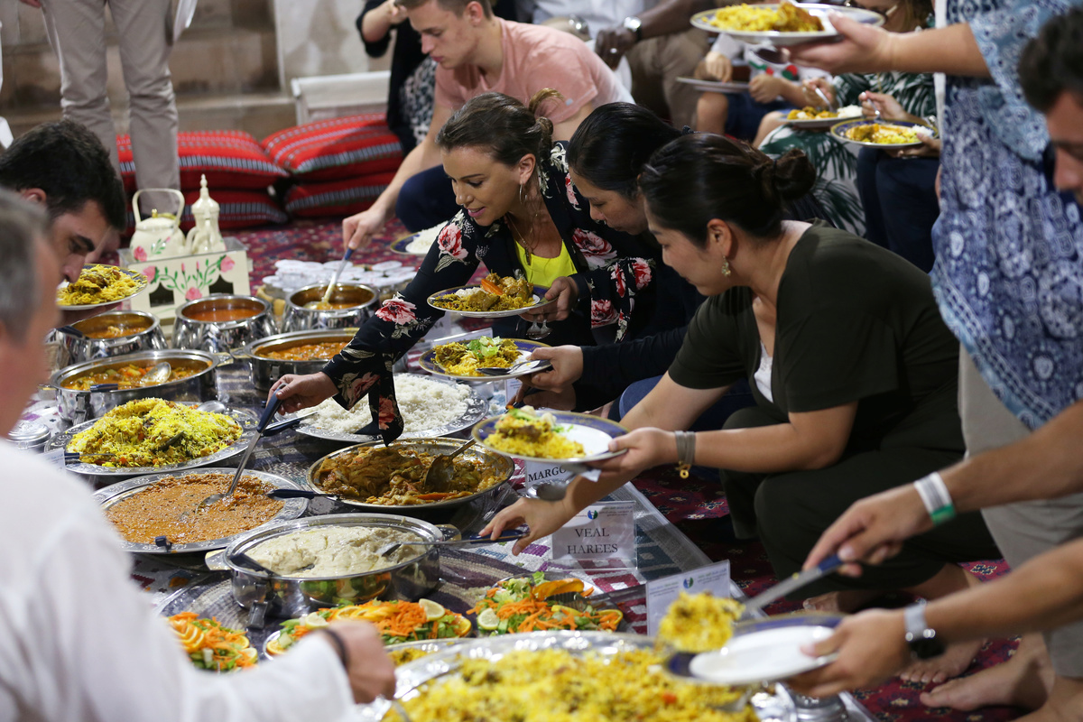 Foreign visitors and residents in the UAE eat an Emirati Iftar meal during the Muslim holy fasting month of Ramadan, at Sheikh Mohammed Centre for Cultural Understanding (SMCCU) in Dubai, UAE May 17, 2019. REUTERS/Satish Kumar