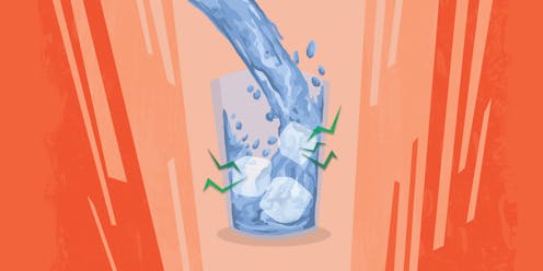 Why does ice makes a cracking sound when water is poured on it? - Valeska, age 7, Brisbane, QLD.