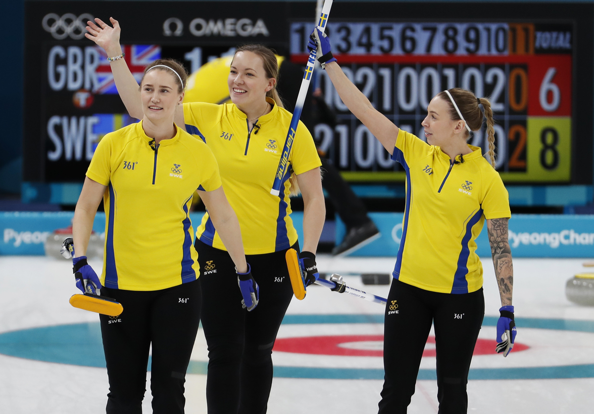 Sweden's skip then took her simple last shot to secure an 8-6 win that keeps them firmly on course to be top seeds for the semi-finals. Sweden won the event in 2006 and 2010 but lost to Canada in the final in 2014.