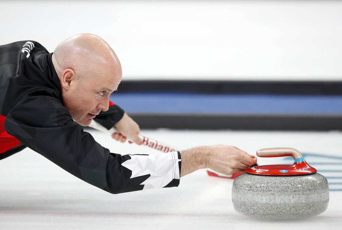 Curling - Pyeongchang 2018 Winter Olympics - Men's Semi-final - Canada v U.S. - Gangneung Curling Center - Gangneung, South Korea - February 22, 2018 - Skip Kevin Koe of Canada delivers the stone. REUTERS/Phil Noble