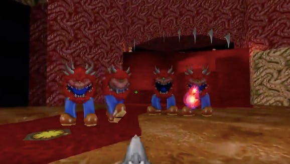 In Kinsie’s shared video, the Cacodemons are seen skipping over to the Doom guy with Mario legs on. You can’t take the protagonist seriously as he tries killing the monsters with his shotgun because the Cacodemons’ shoes even have a small squeaking sound straight out of Mario 64.