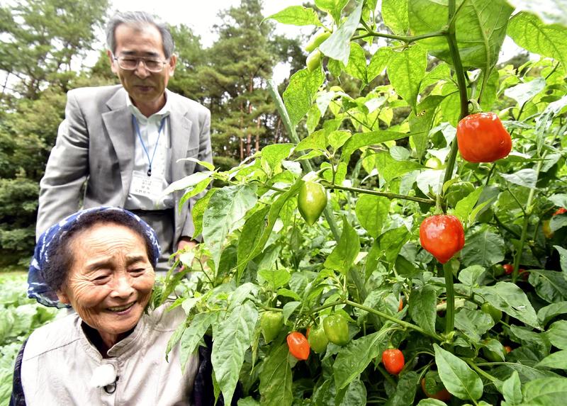 The first ingredient that caught his eye was habanero peppers. Teiko Hosokawa, a 76-year-old farmer, had been cultivating the round red peppers since before the disaster, thinking they were cute, but they were so spicy that she could not eat them herself and sales were not strong at the michi-no-eki. They decided to dry them and turn them into powder.