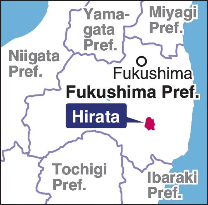 Hirata village is located in the Abukuma Highlands in the southeastern part of Fukushima Prefecture, and is surrounded by mountains about 500 meters above sea level. The population was 6,029 as of Oct. 1.