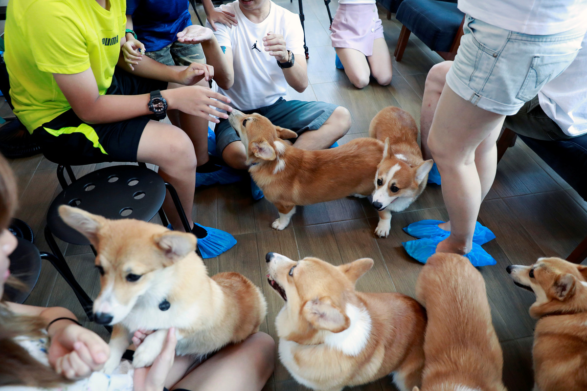 The cafe houses 12 corgis, whose popularity has been soaring among Thai dog lovers for their roly-poly build and an almost infallible ability to make people smile.
