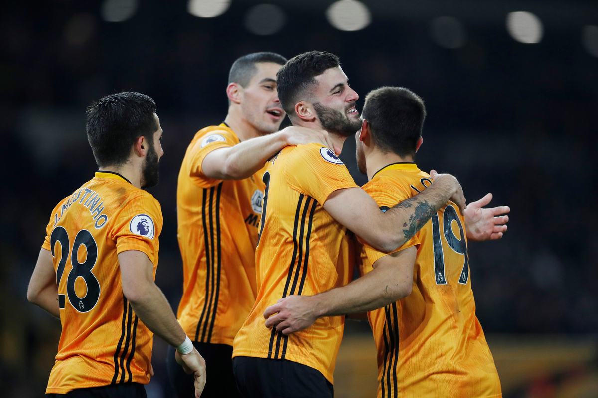 Soccer Football - Premier League - Wolverhampton Wanderers v West Ham United - Molineux Stadium, Wolverhampton, Britain - December 4, 2019 Wolverhampton Wanderers' Patrick Cutrone celebrates scoring their second goal with teammates Action Images via Reuters/Matthew Childs