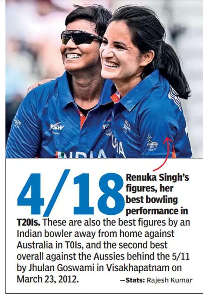 India will still take heart from Renuka’s sizzling show on Friday. Reaping the rewards of sticking to a good line outside off, the 26-year-old speedster from Himachal gave India the perfect start when she had Healy for a duck, edging to Deepti Sharma at first slip of just the second ball of the innings. Lanning cut her to point, while Mooney chopped her delivery on to her stumps while trying to cut her. She then cleaned up the stumps of the dangerous McGrath with a ‘Jaffa’ as the ball swung in beautifully after pitching, finding the gate between the batter and her bat.