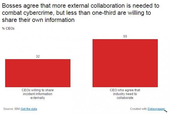 Well over 50 per cent of bosses agree that more external collaboration is needed to combat cybercrime, but less than one-third are willing to share their own information externally, according to a survey by IBM, a technology and consulting corporation, which gathered answers from more than 700 top senior executives globally.