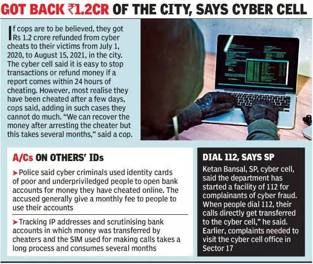 On the arrest side, 38 cyber criminals were caught in one year from July 2020. Six of them were nabbed from Jamtara, Jharkhand, which is considered to be a safe haven for cyber criminals in the country. Recently, the cyber cell had arrested three Jamtara residents for allegedly duping a a Sector 23 woman of Rs 11.93 lakh by offering to help her receive notifications for withdrawing money on her mobile phone. A few of the accused were from West Bengal, Mumbai and Delhi.