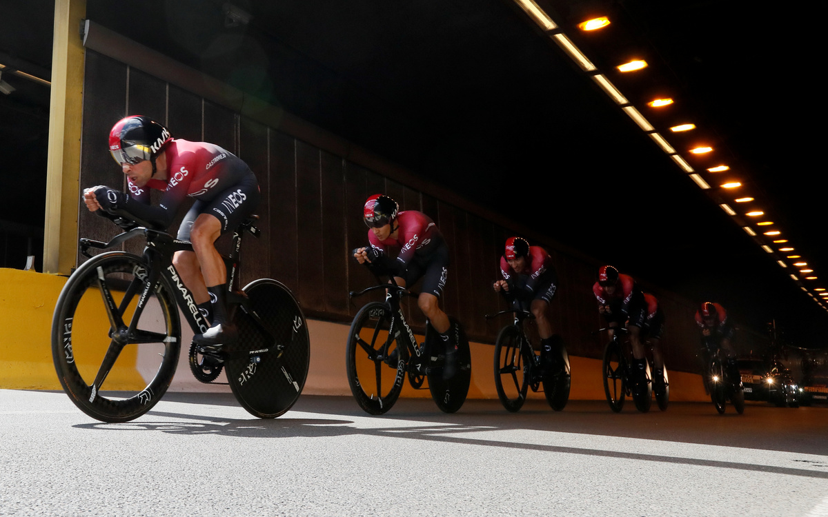 Ineos's eight riders, led by defending champion Geraint Thomas, did not win Sunday's 27.6km team time trial around the streets of Brussels but they landed the first blow in a three-week battle for the coveted yellow jersey.