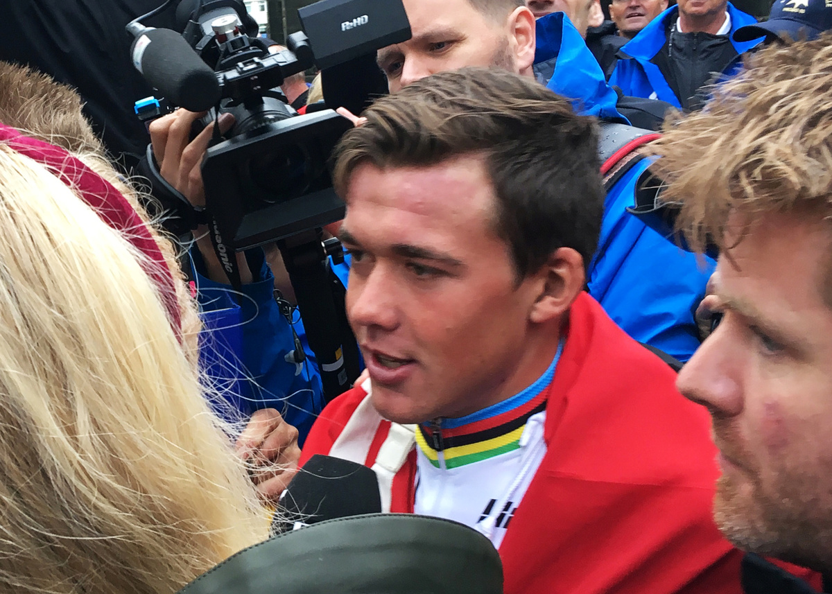 A few days earlier in the time trial, Belgium's 19-year-old tyro Remco Evenepoel finished second, a year after winning the TT and road junior titles. He became the youngest medallist at a world championships and was even regarded as an outside bet for Sunday's climax in Yorkshire before having to stop to help veteran team mate Philippe Gilbert.