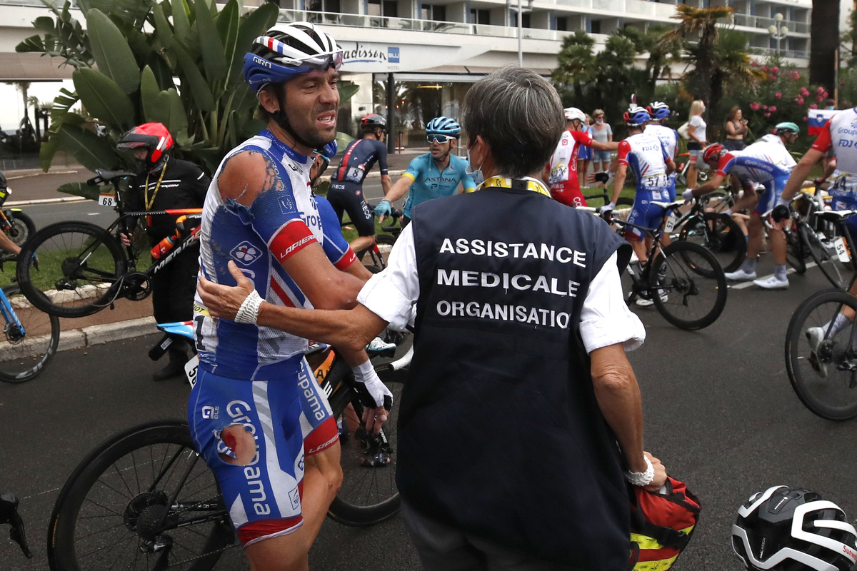 "I'm ok, nothing's broken, I continue," Pinot said ahead of the second stage, a 186km trek into the mountains surrounding Nice and featuring two Category 1 climbs.