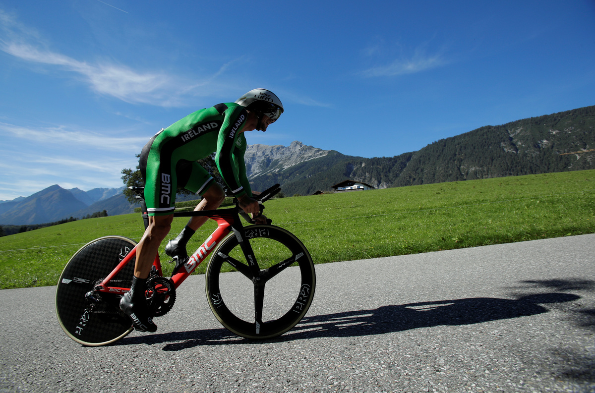 German Tony Martin was heavily cut on each leg but continued racing.