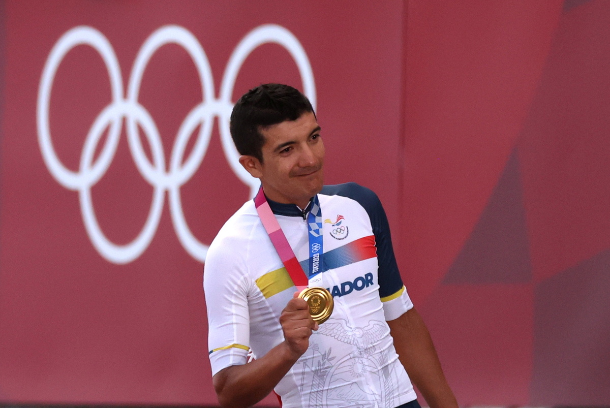"To see your flag as the top one, and to have this medal with me. It's sensational," Carapaz, who spent the early months of this year riding the gravel roads on the side of the Cotopaxi Volcano in the Andes, told reporters.