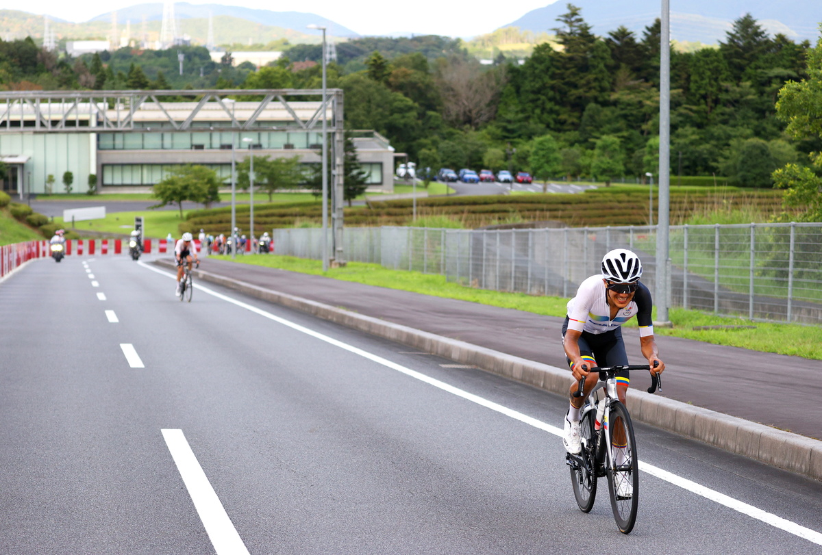 A brutally tough Olympic road race course wore down most of the 130 riders who set off from Musashinonomori Park in stifling heat on Saturday but not gold medallist Richard Carapaz who trains on an Ecuadorean volcano.