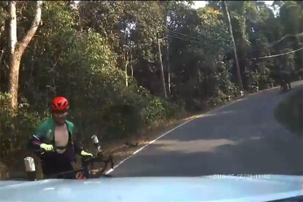 The group left Chaiyaphum about 6am on Sunday and were cycling along the road through Khao Yai National Park, in Pak Chong district, about 4pm when the encounter occurred.