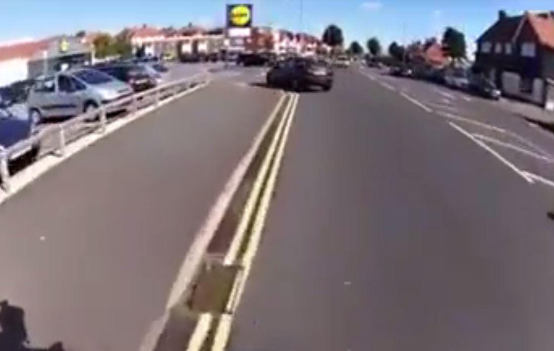 The second car then puts their indicator on to turn left into a Lidl car park up ahead, infuriating the cyclist.