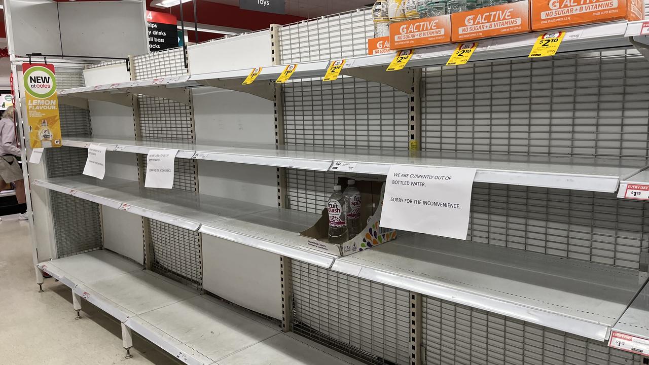 At Coles supermarket in central Darwin on Thursday, staff restocked shelves with newly ordered supplies of bottled water as quickly as they were snapped up.