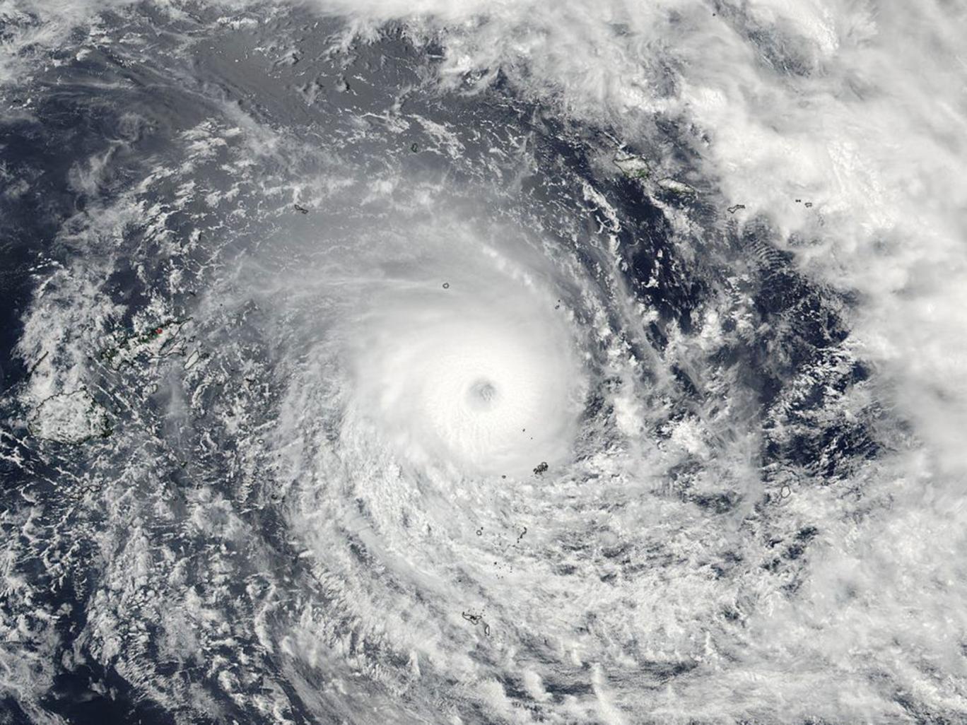 The cyclone tore through the Pacific Island chain yesterday, with wind speeds reaching peaks of 177 miles (285km) per hour.