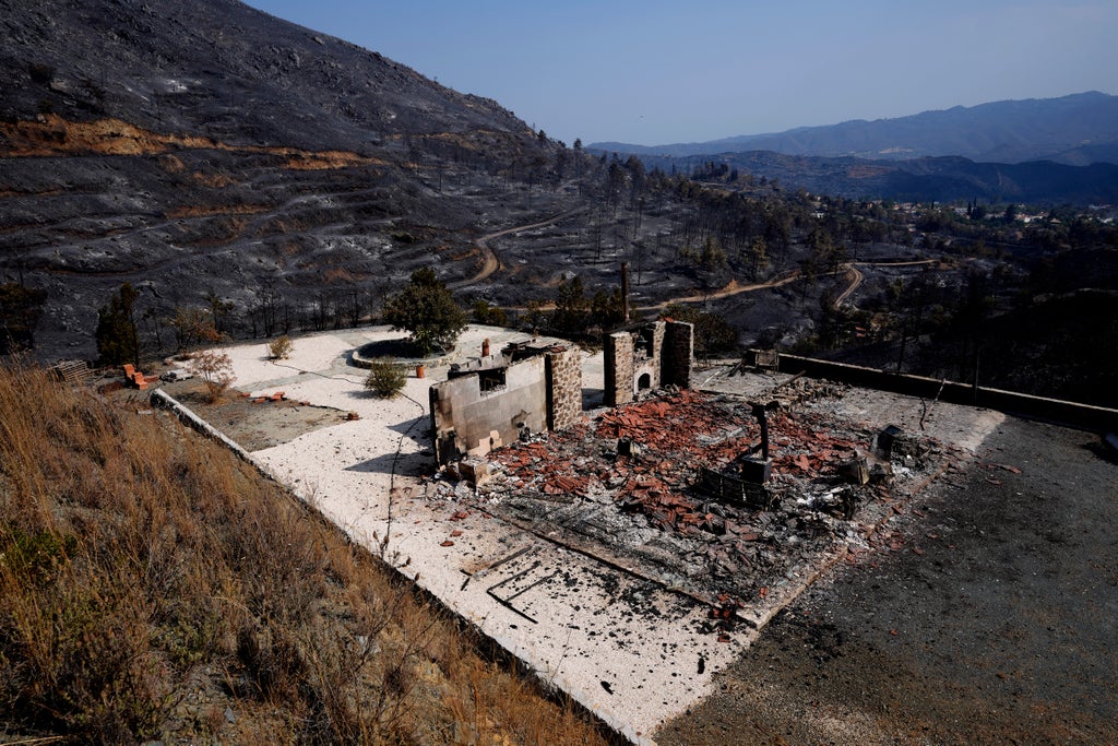 Fire crews remain on the scene in case the blaze reignites amid temperatures reaching 35 C (95 F). Cyprus Electricity Authority officials said they hope to have power restored to at least seven villages by Monday evening.
