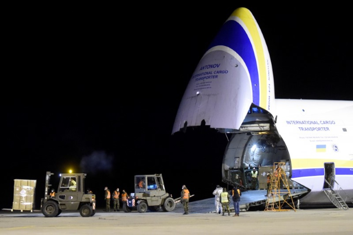 Soldiers unload a plane delivering over 100 tonnes of medical and protective gear from China to stop the spread of coronavirus disease (COVID-19) at Pardubice Airport in Pardubice, Czech Republic, March 22, 2020. Josef Vostarek/Pool via REUTERS