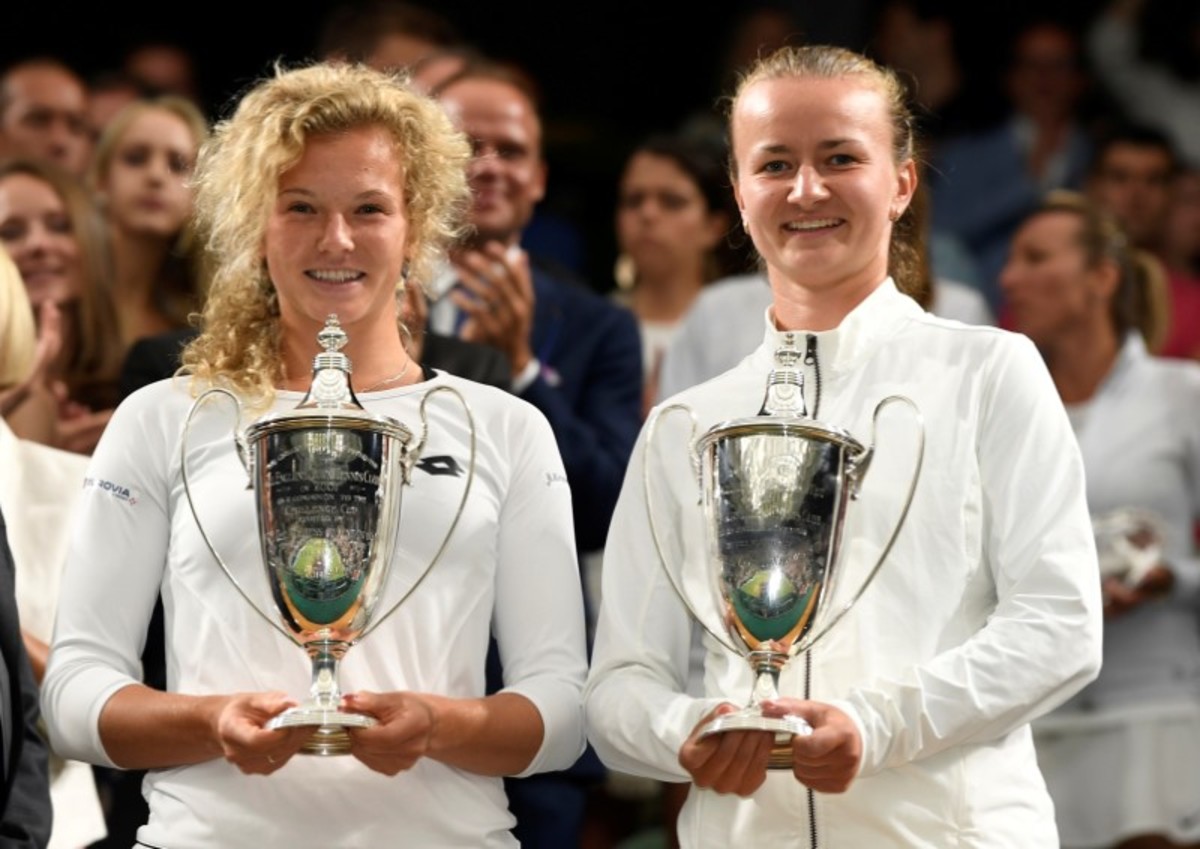 LONDON (Reuters) - Czech duo Barbora Krejcikova and Katerina Siniakova won the Wimbledon women's doubles final on Saturday -- five years after they won the junior title together -- and dedicated the victory to their late compatriot Jana Novotna.