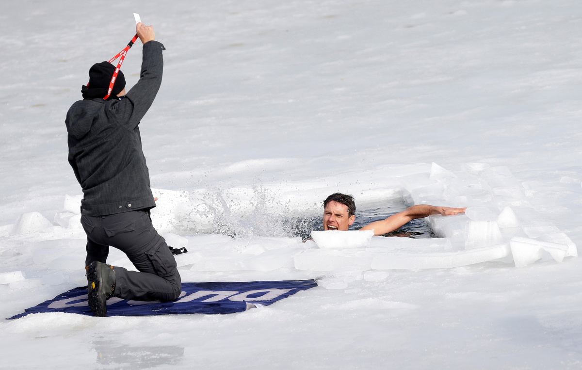 "This will do," Vencl said after emerging from his minute-and-half swim in water measured at temperatures of 3 degrees Celsius and pumping his fist in celebration.
