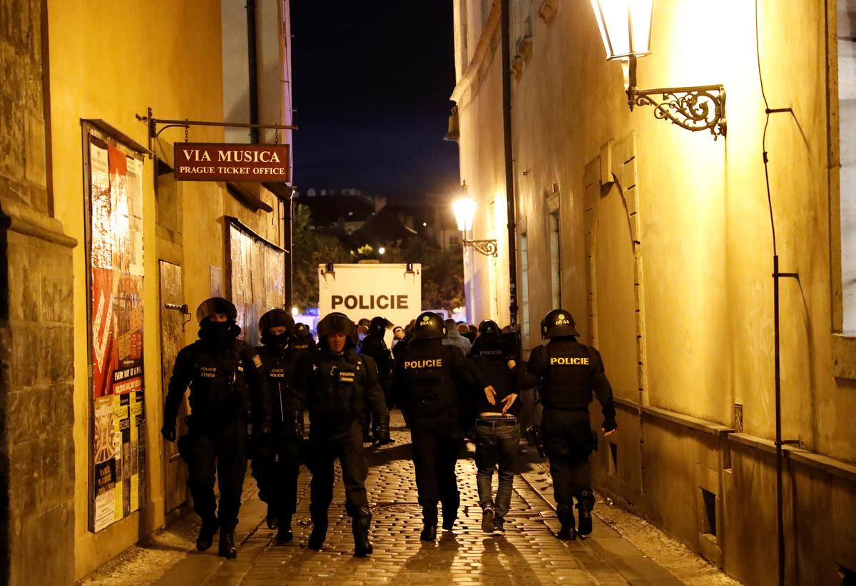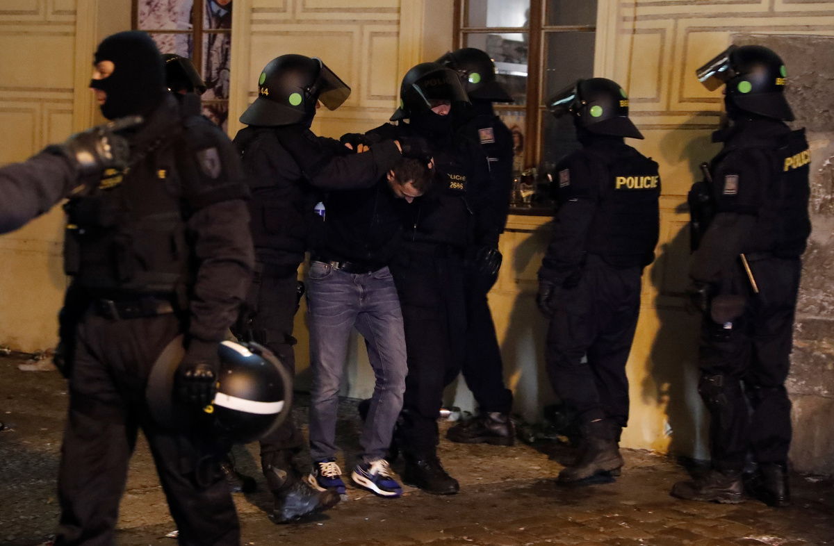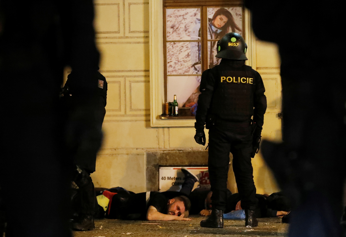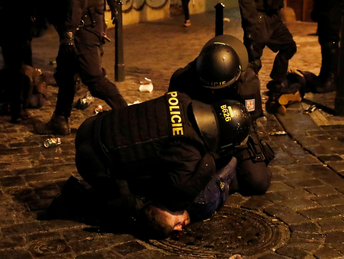 Soccer Football - Euro 2020 Qualifier - Group A - Fans gather in Prague for Czech Republic v England - Prague, Czech Republic - October 11, 2019 A fan is arrested by police before the match REUTERS/Bernadett SzaboSoccer Football - Euro 2020 Qualifier - Group A - Fans gather in Prague for Czech Republic v England - Prague, Czech Republic - October 11, 2019 A fan is arrested by police before the match REUTERS/Bernadett SzaboSoccer Football - Euro 2020 Qualifier - Group A - Fans gather in Prague for Czech Republic v England - Prague, Czech Republic - October 11, 2019 Fans lie on the floor of a street as a police officer looks on before the match REUTERS/Bernadett SzaboSoccer Football - Euro 2020 Qualifier - Group A - Fans gather in Prague for Czech Republic v England - Prague, Czech Republic - October 11, 2019 A fan is arrested by police before the match REUTERS/Bernadett SzaboSoccer Football - Euro 2020 Qualifier - Group A - Fans gather in Prague for Czech Republic v England - Prague, Czech Republic - October 11, 2019 A fan is arrested by police before the match REUTERS/Bernadett Szabo