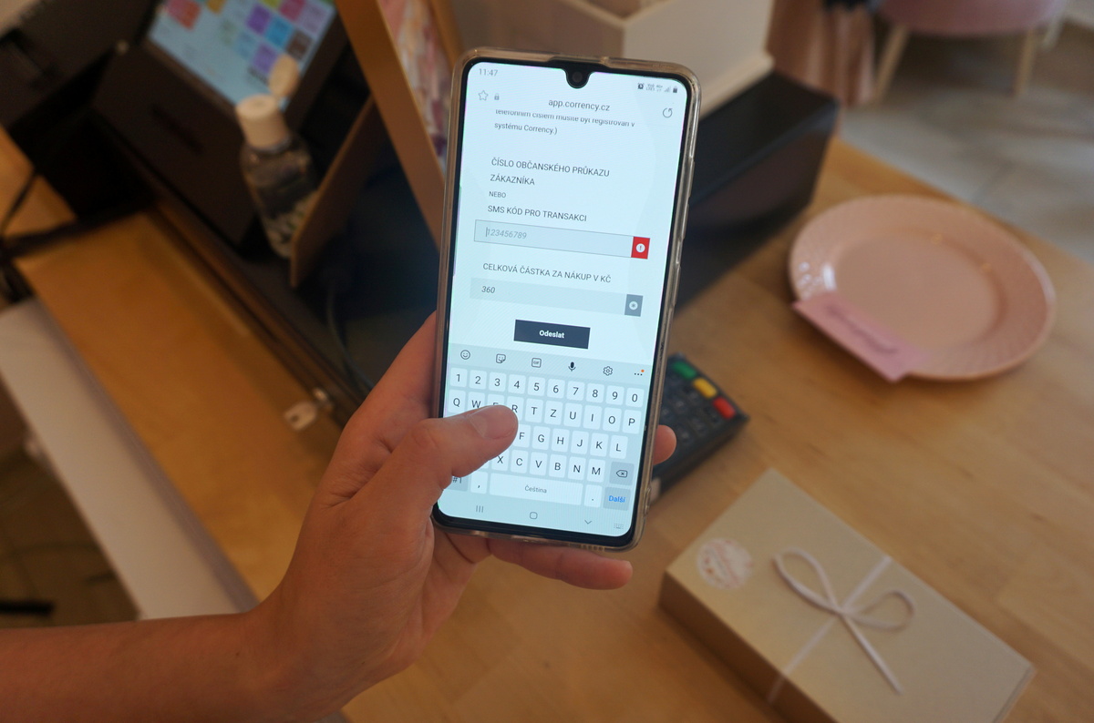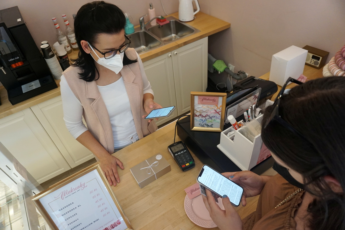 The business then sends a text message to the system, which automatically transfers the relevant quantity of corrents from the customer's account to its own account. The business then get the corrents converted into crowns, usually the next day.