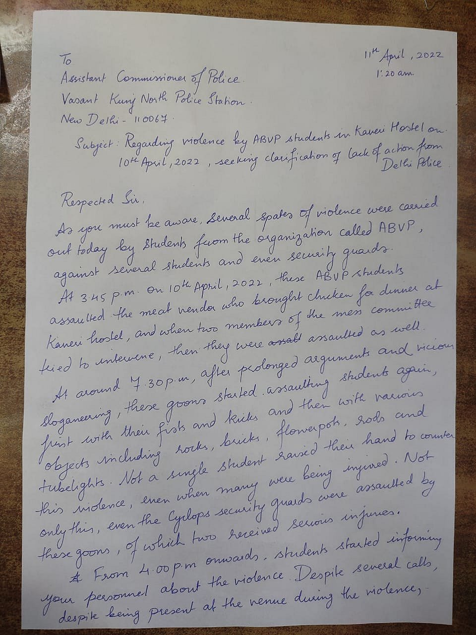 जिसके बाद आइसा ने बयान जारी कर कहा कि, जिन लोगों ने विद्यार्थियों पर हमले किए हैं वे बार-बार इस तरह की घटना को अंजाम दे रहे हैं. लेकिन प्रशासन कोई कार्रवाई नहीं कर रहा है. संगठन ने आरोप लगाया कि प्रदर्शन के दौरान महिला छात्रों के साथ पुलिस ने हाथापाई की और उनके कपड़े खींचे.