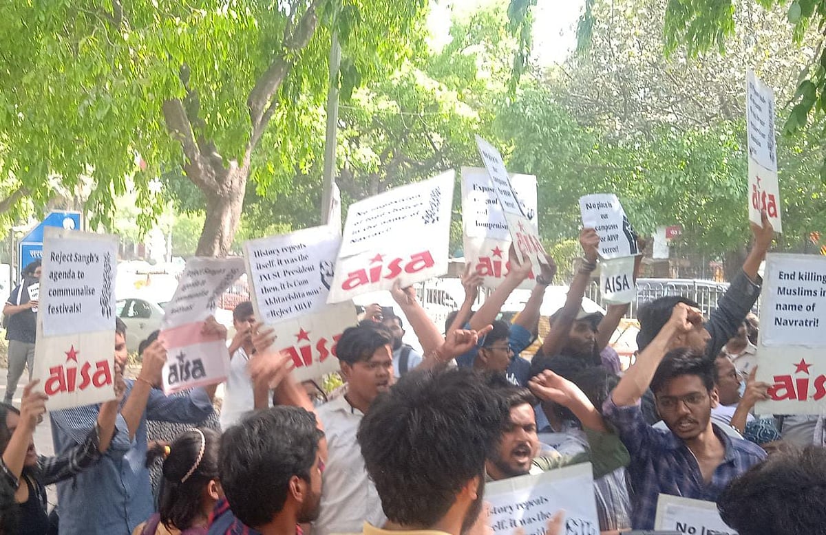 एबीपीवी के अध्यक्ष रोहित कुमार ने प्रेस कांफ्रेंस कर कहा कि नॉनवेज को लेकर कोई विवाद था ही नहीं. रामनवमी से एक दिन पहले उनको धमकी मिल रही थी कि रामनवमी की पूजा में हड्डियां फेंकी जाएंगी. पूजा को रोकने की साजिश रची गई. फर्जी नोटिस भेजा गया. छात्रों को कावेरी हॉस्टल में घुसने से रोका गया. लेफ्ट पार्टियों के छात्र लाठी, डंडे लेकर आए थे. उन्होंने हमारे झंडे फाड़े और छात्रों को रॉड, ट्यूब लाइट से पीटा. रोहित कुमार ने बताया कि पुलिस को कुल तीन शिकायत दी गई हैं.