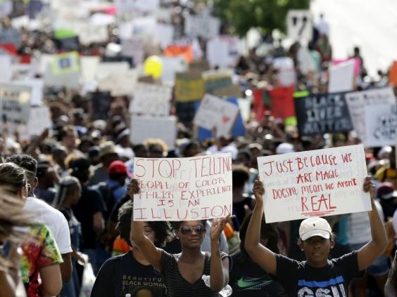 The protest, along with many others across the US, were sparked by the police shootings of two black men - Mr Castile and Alton Sterling - this week.